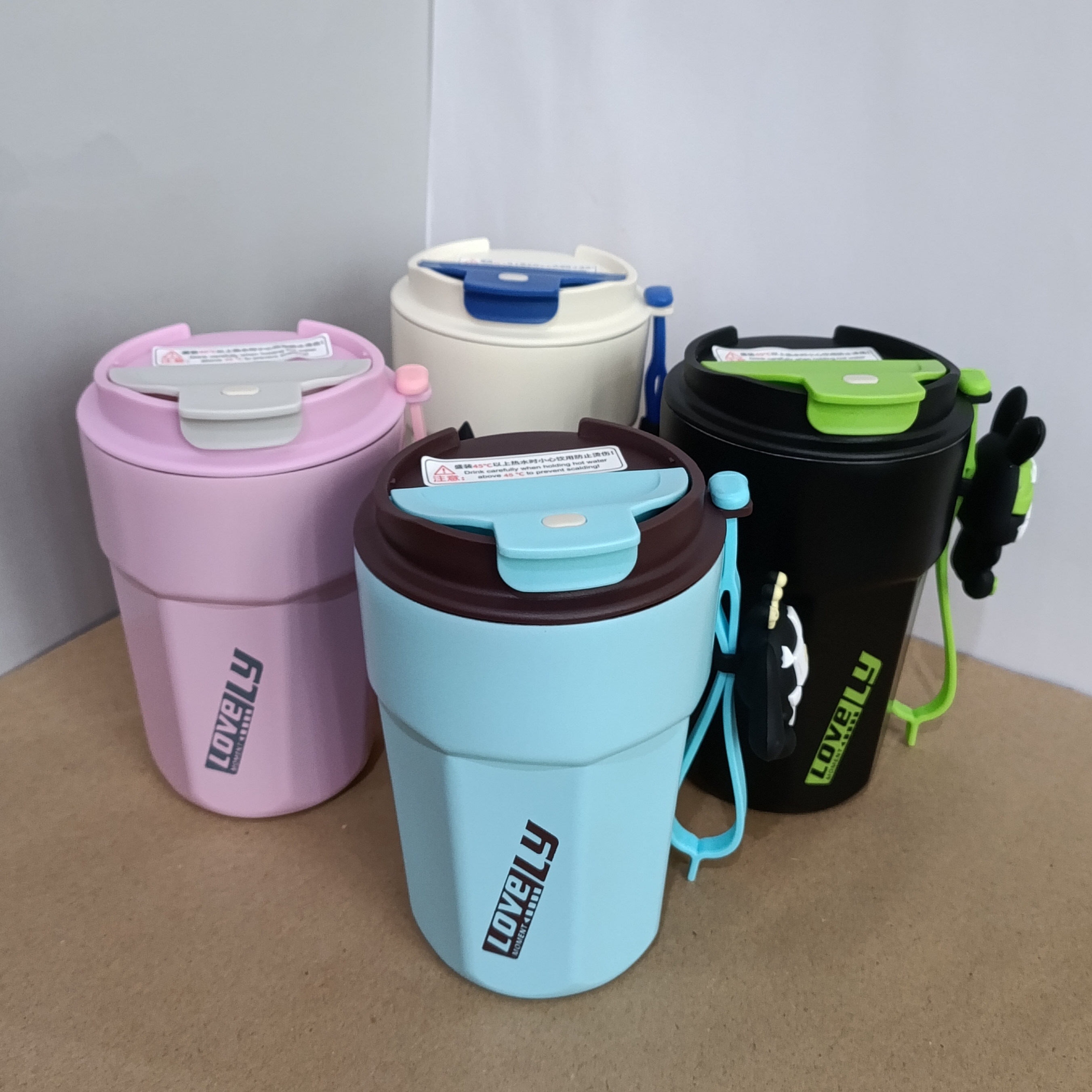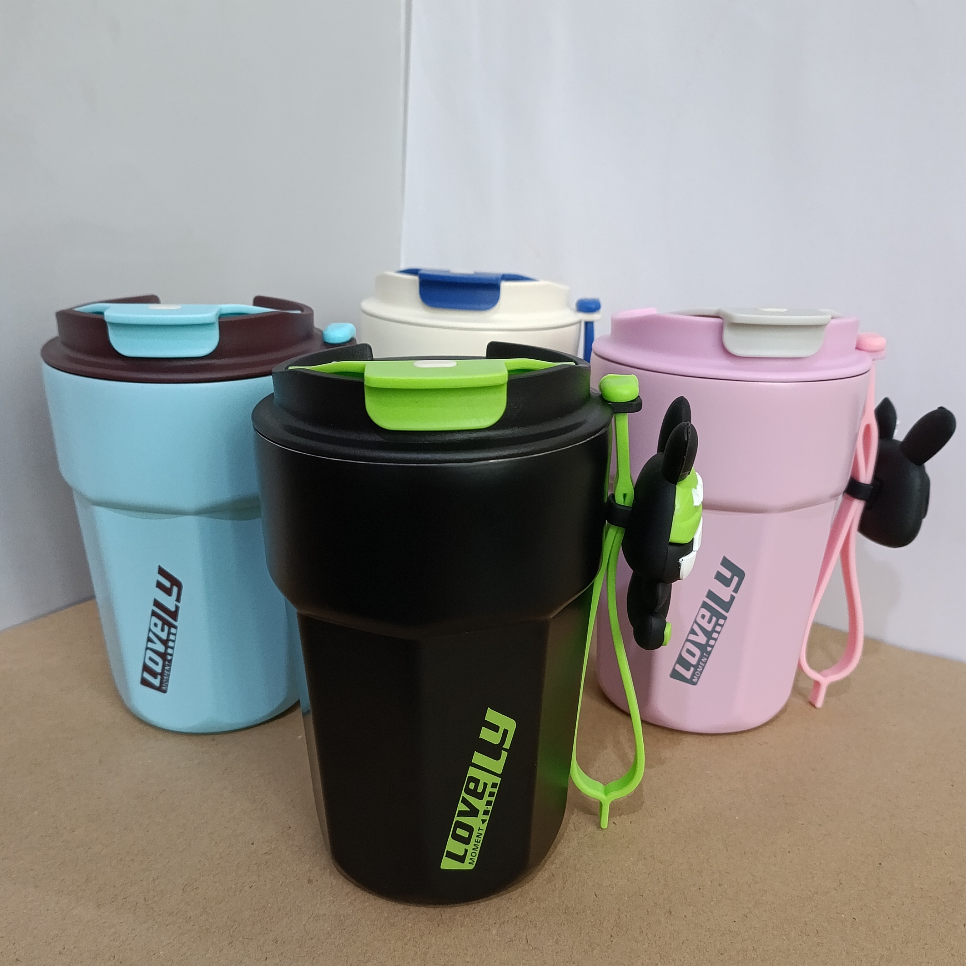 درب پیچی با مکانیزم آساننوش فشاری، مانع نشت مایع در کیف یا کوله میشود. بند سیلیکونی همراه با عروسک فانتزی نهتنها ظاهری جذاب به ماگ میدهد، بلکه حمل آن را بسیار راحتتر کرده است.
