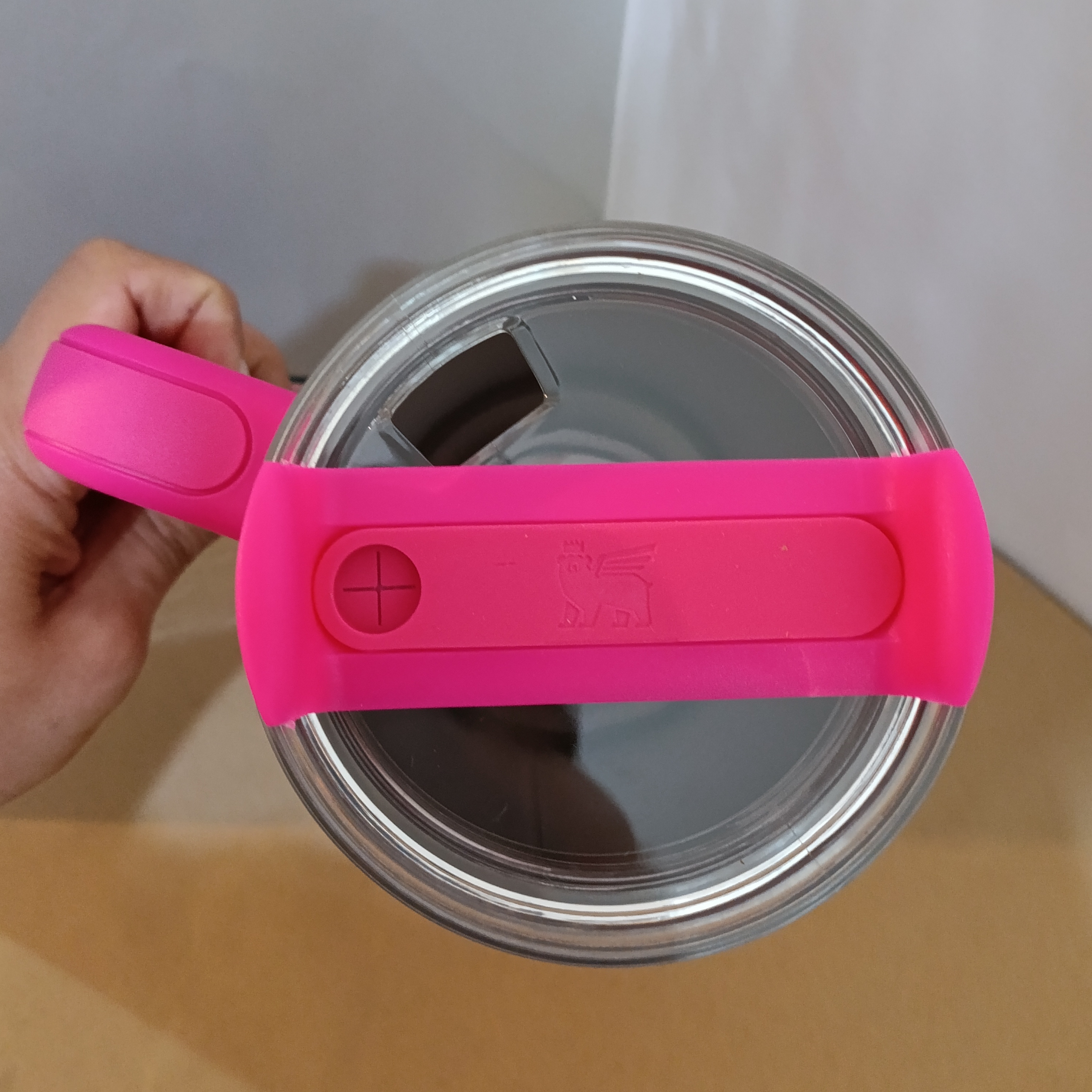 دستهی پلاستیکی ثابت و مقاوم، حمل تامبلر را آسان میکند و طراحی ارگونومیک آن باعث شده حتی با حجم زیاد، در دست گرفتن آن راحت باشد.