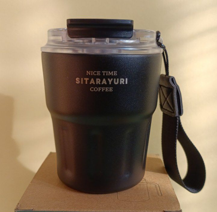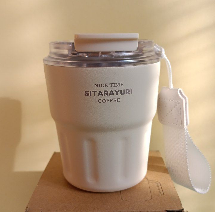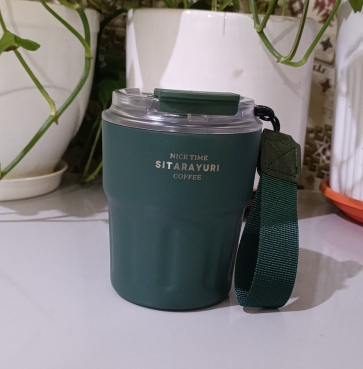 تراول ماگ ۲۹۰ میل سیتارایوری استیل دوجداره | لیوان ضدنشت با درب شفاف دوحالته نی و آساننوش + بند پارچهای