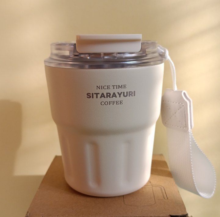 SITARAYURI 290ml Stainless Steel Travel Mug – Leak-Proof Double Wall Cup with Dual-Mode Straw & Sip Lid + Fabric Strap