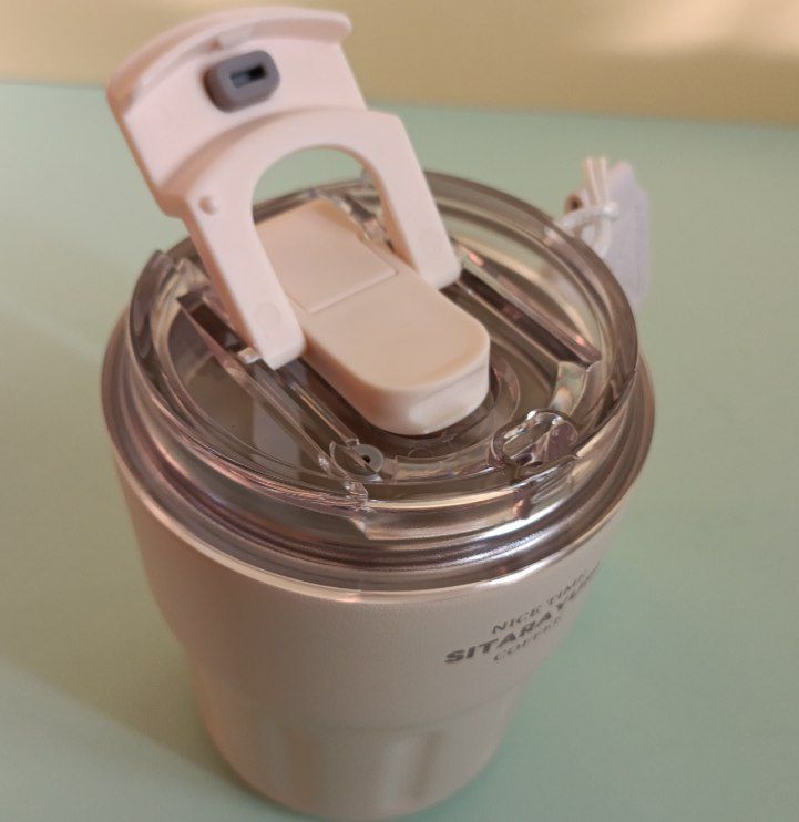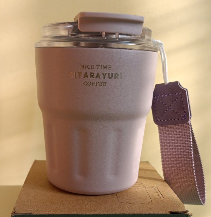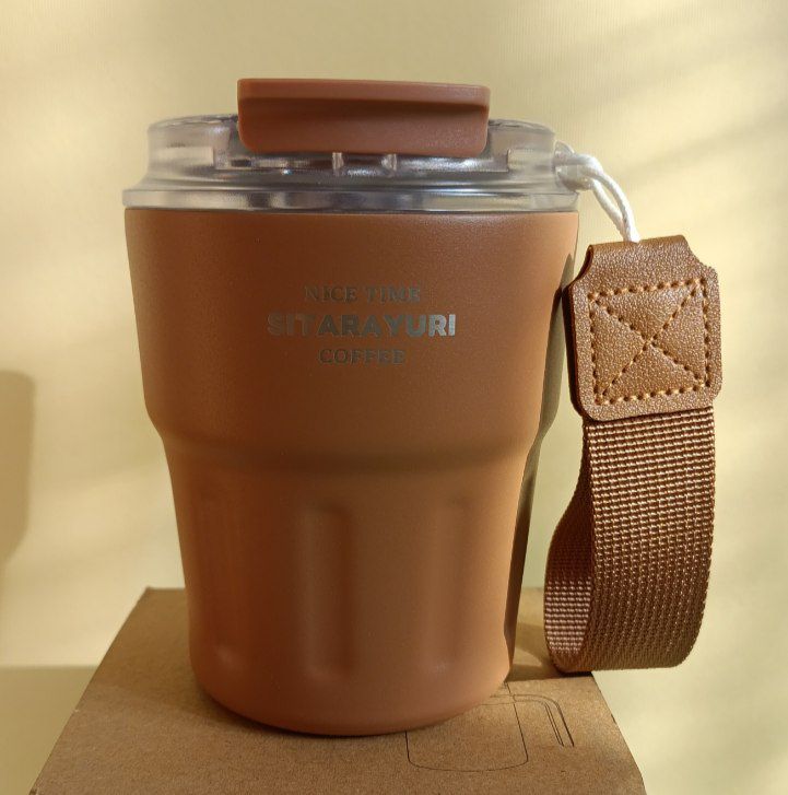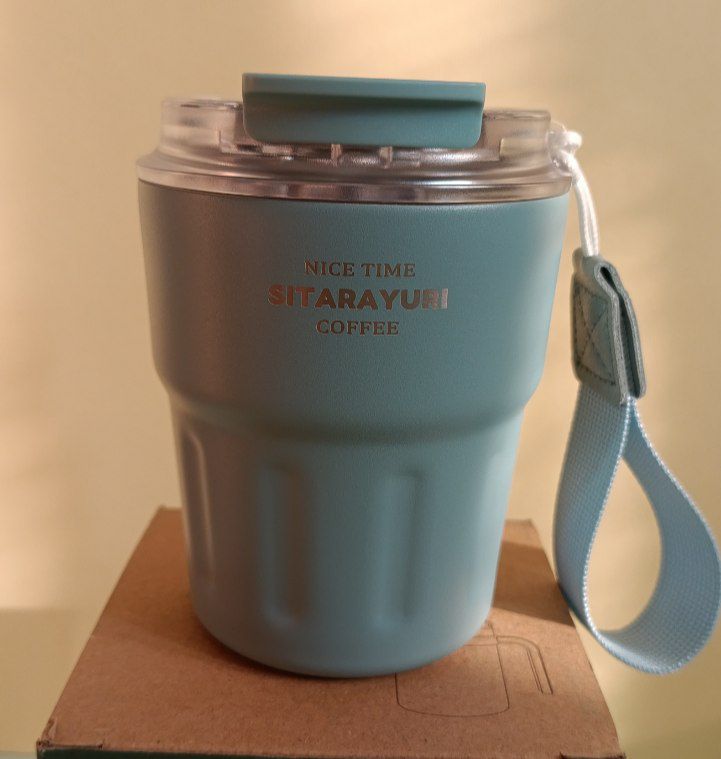 تراول ماگ ۲۹۰ میل سیتارایوری استیل دوجداره | لیوان ضدنشت با درب شفاف دوحالته نی و آساننوش + بند پارچهای