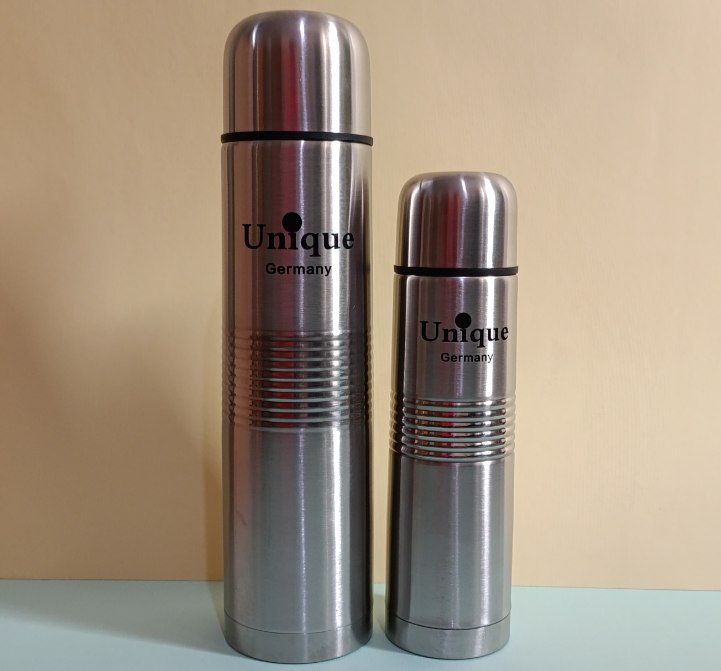 فلاسک unique استیل دوجداره یونیک 500 و 1000 میل با کیف چرمی زیپدار مدل فنجانی دکمهای فشاری
