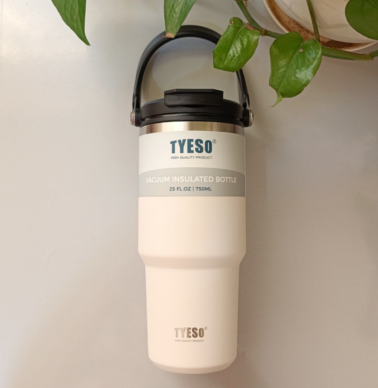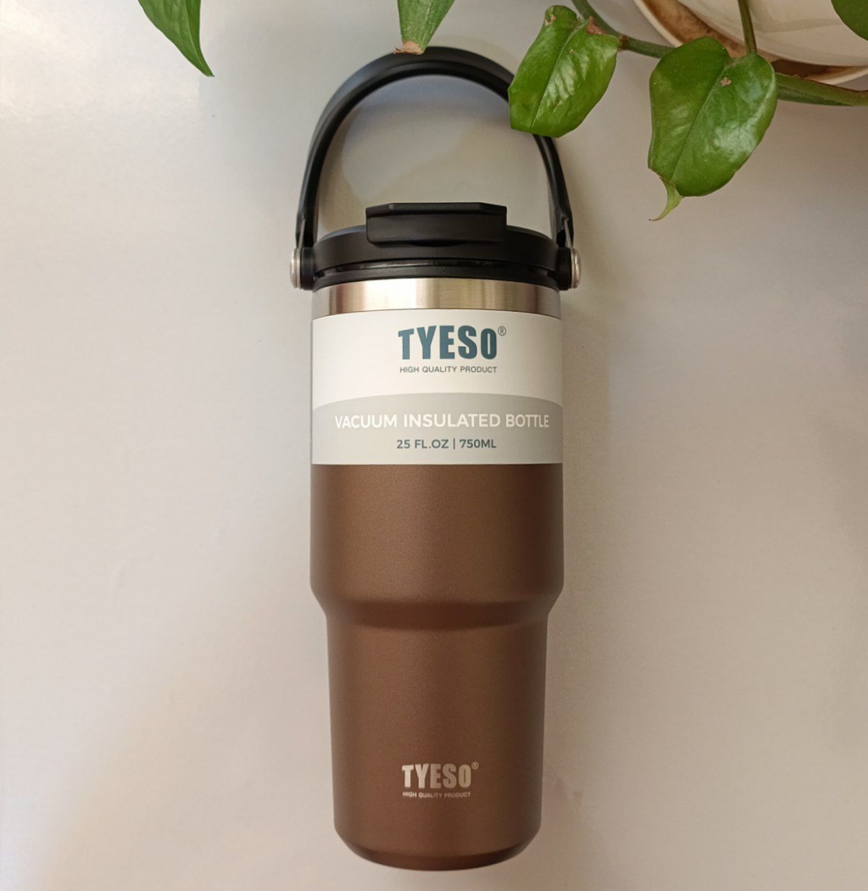 TYESO 750ml Tumbler با بدنه استیل دوجداره و دسته فلزی