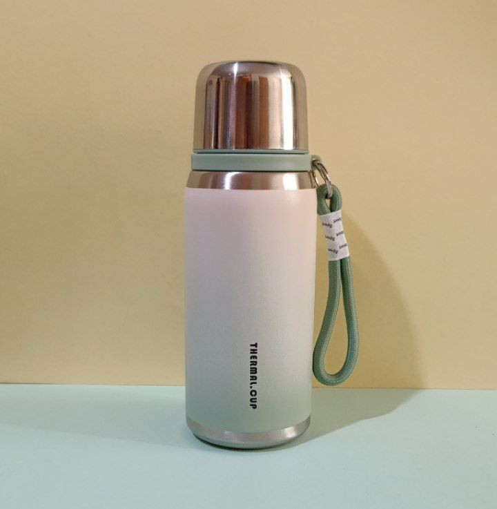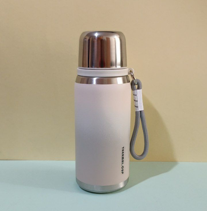 طراحی دو رنگ بدنه با قسمت بالایی سفید روشن و قسمت پایینی در رنگهای متنوع آبی، سبز، بنفش و کرم شکلاتی جلوهای خاص به این محصول داده است. بند پارچهای کنار بدنه نیز حمل آن را در محل کار، دانشگاه، سفر و طبیعتگردی آسانتر میکند. این فلاسک ترکیبی از ظاهر شیک و عملکرد حرفهای است.