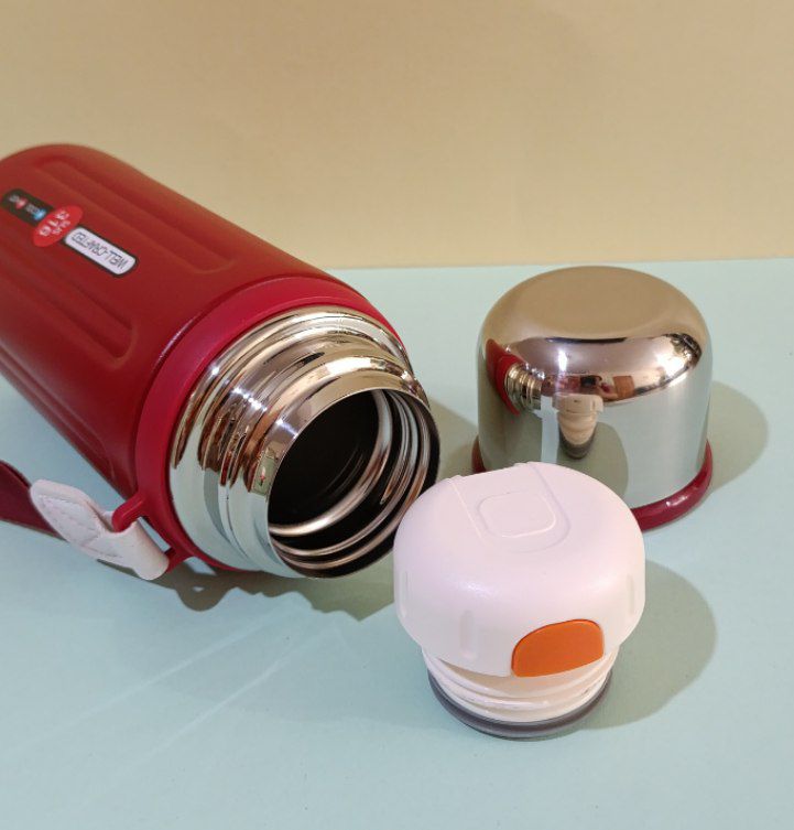 درب اصلی این فلاسک از جنس استیل بوده و به صورت پیچی بسته میشود و در قسمت داخلی آن یک درب دکمهای فشاری تعبیه شده که امکان ریختن نوشیدنی را بدون باز کردن کامل در فراهم میکند. این ساختار باعث استفاده راحتتر و جلوگیری از هدر رفت دما میشود.