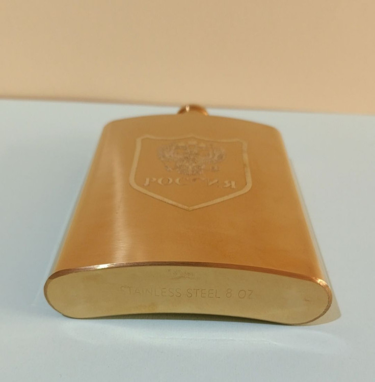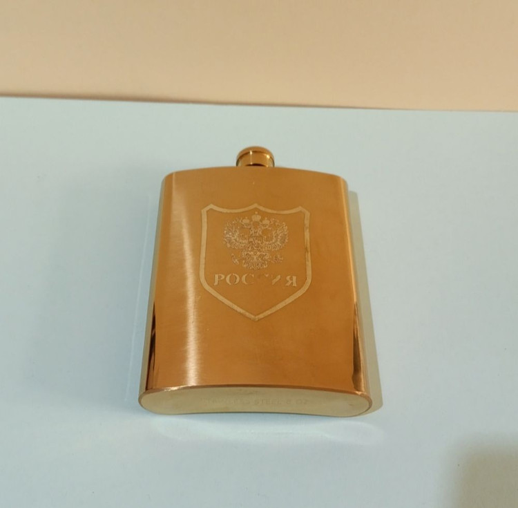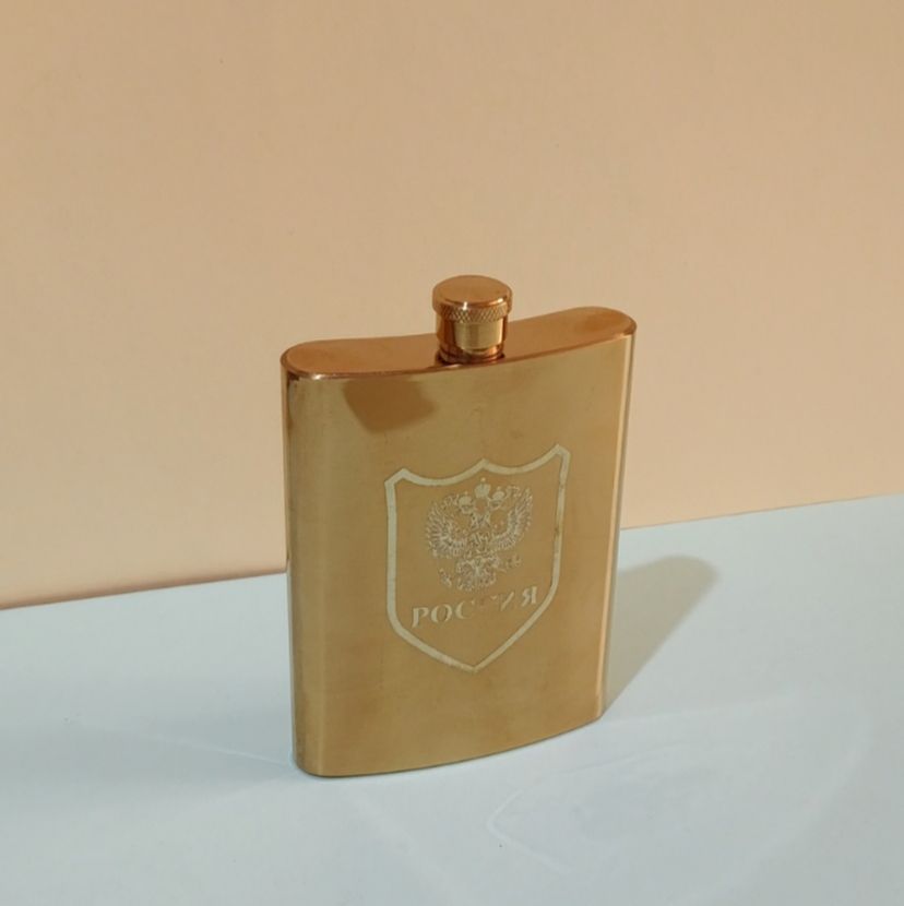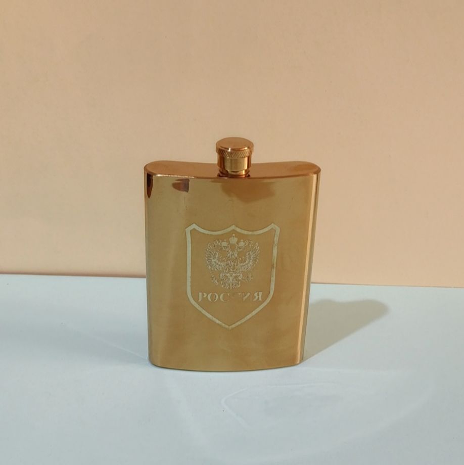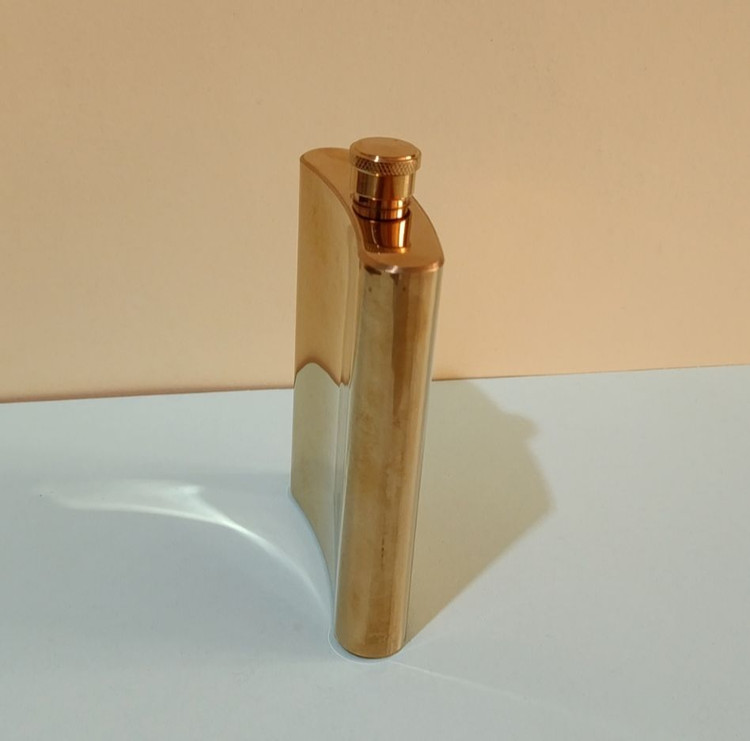 قمقمه کتابی جیبی استیل ۸ شات روکش چرمی و طلایی– درب پیچی فلزی