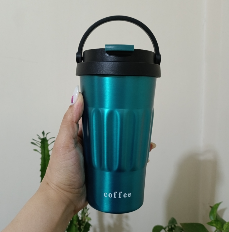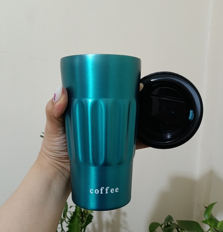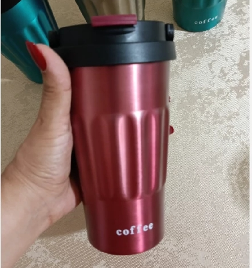 تراول ماگ کافی بدنه شیاردار رنگبندی جذاب متالیک مدل دسته بالا یا دسته سطلی تک حالته به صورت درب آسان نوش برای استفاده آسان و نوشیدن مایعات داغ و سرد طراحی شده است